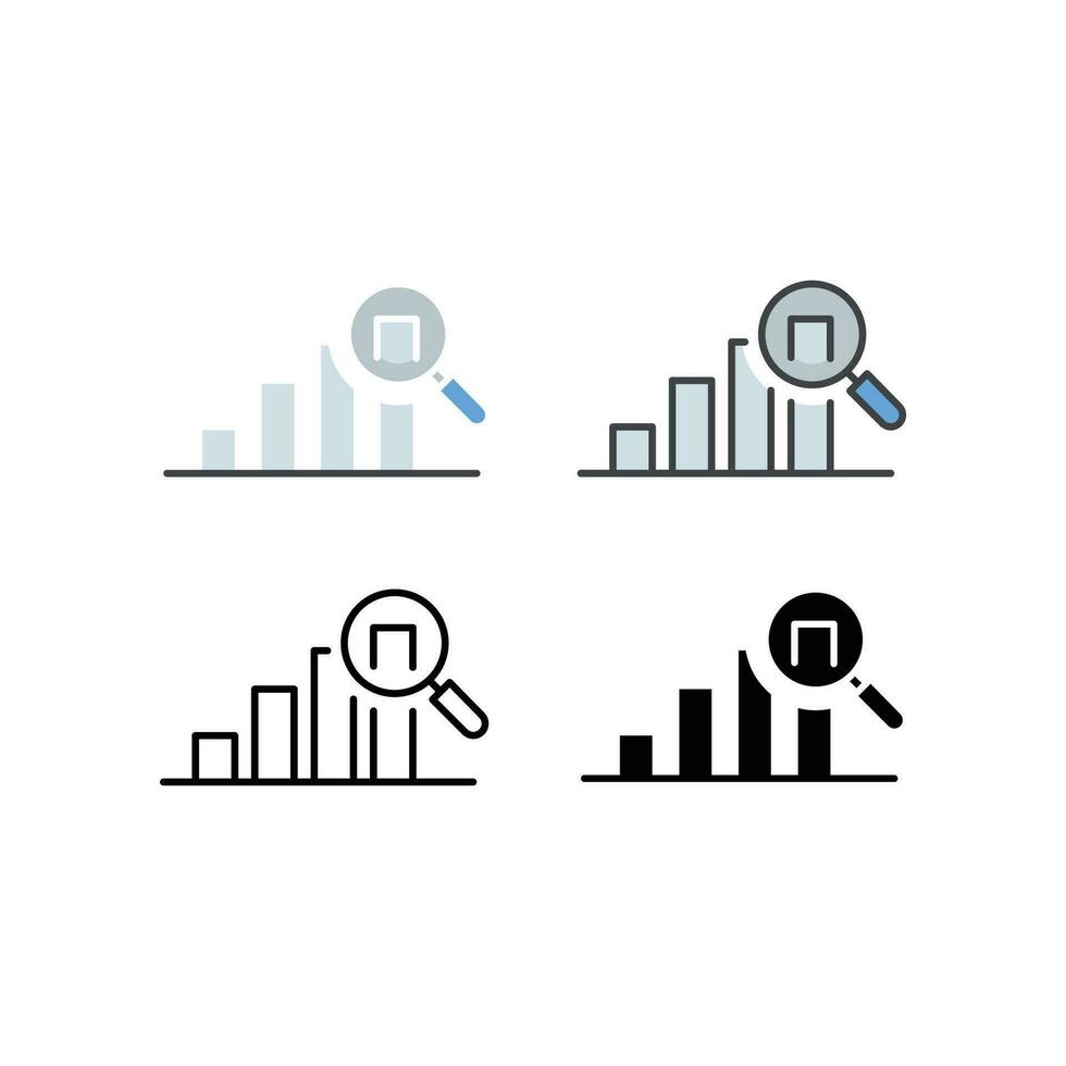 Search graph, Growth diagram, magnifying glass for financial data analysis. Rising chart bar graph assessment analytics. Business Survey Domain Research icon. Vector illustration Design. Pro Vector