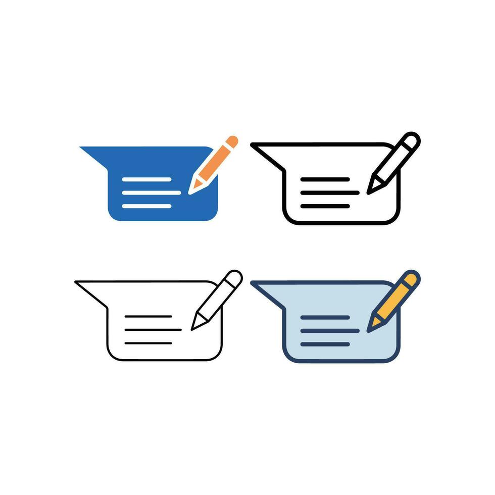 Pen with speech bubble for dialogue chat or group feedback conversation in digital, writing message, Thin line icon, writing message icon set. Vector illustration. Design on white background. EPS 10 Pro Vector