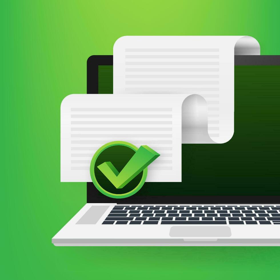 Documents icon. Stack of paper sheets. Confirmed or approved document. Vector stock illustration Pro Vector