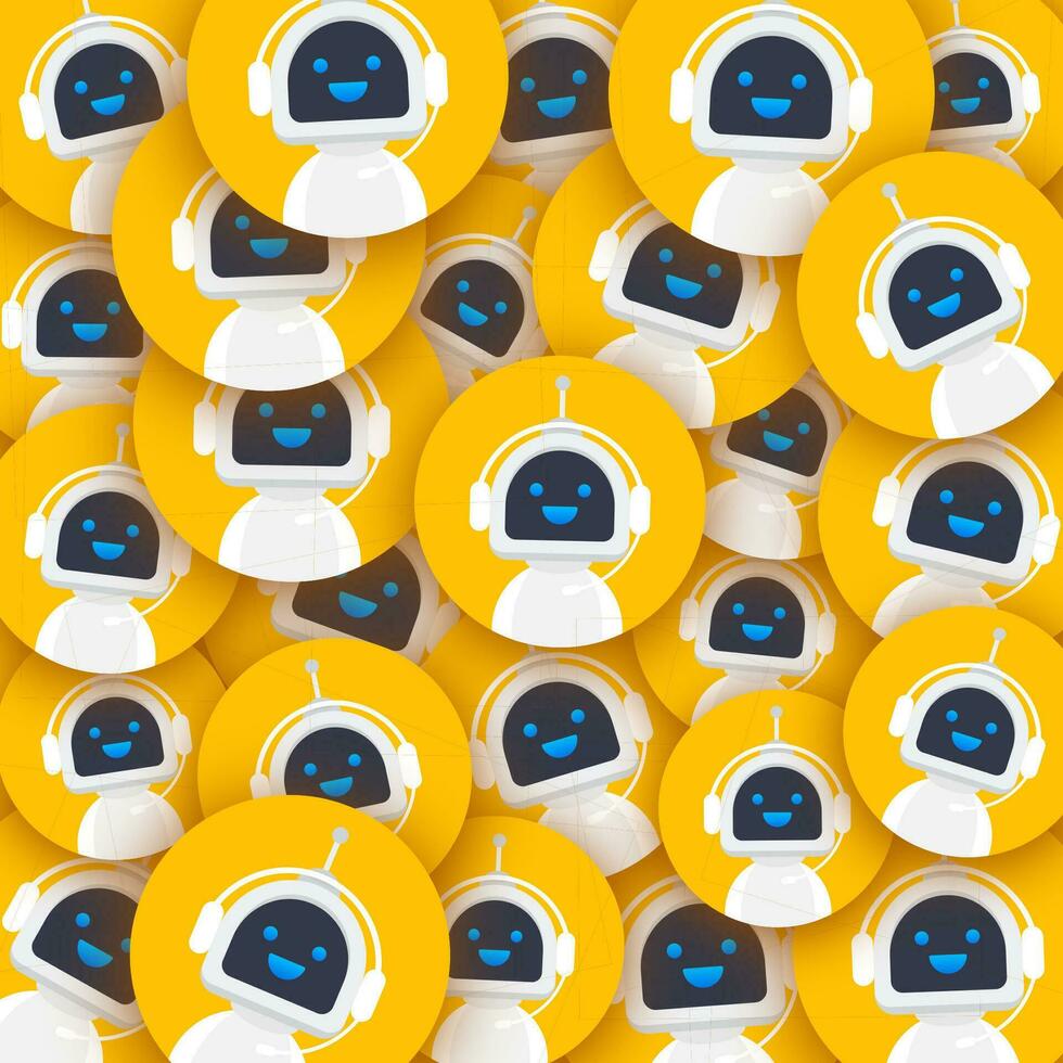 Robot icon sticker pattern. Bot sign design. Chatbot symbol concept. Voice support service bot. Online support bot. Vector illustration Pro Vector