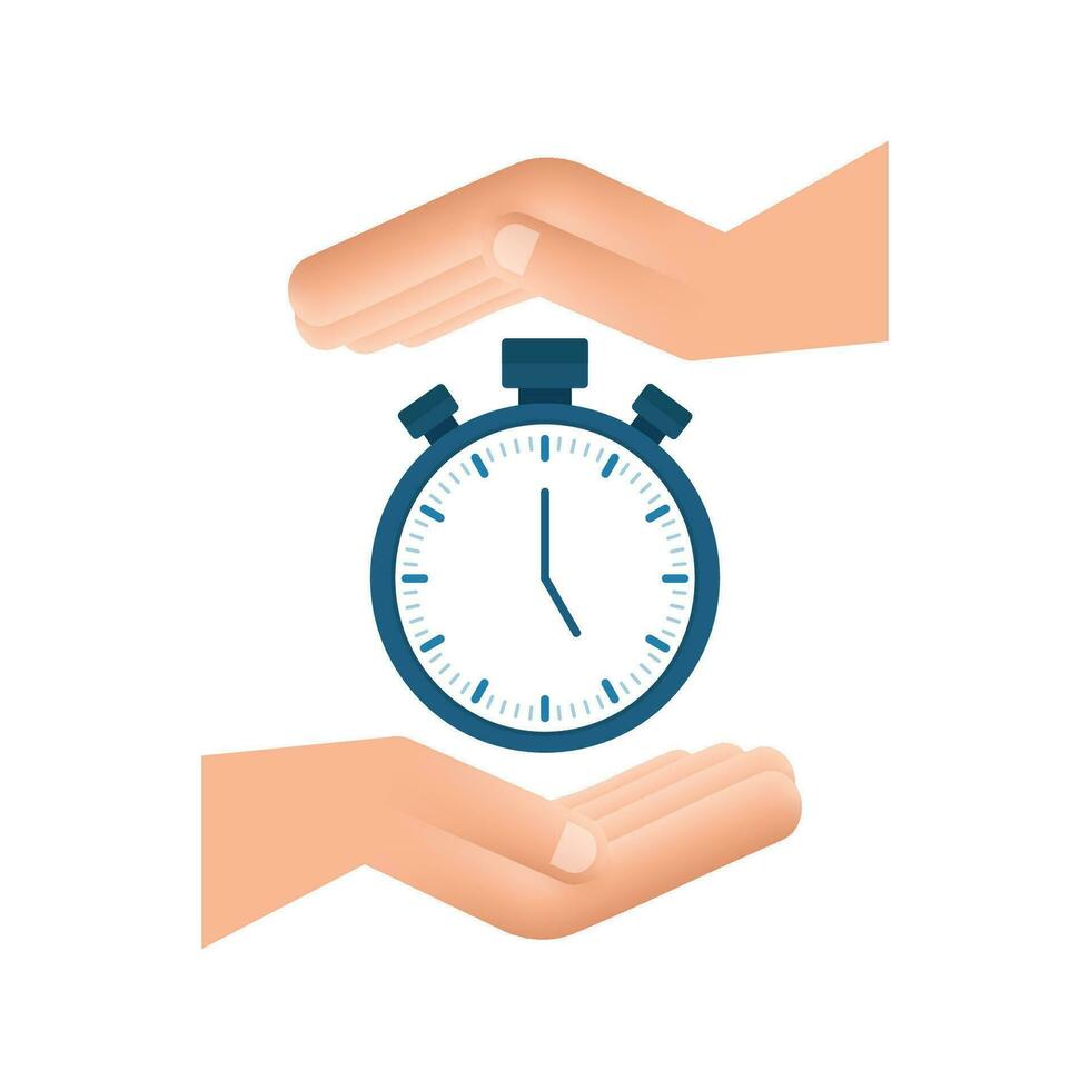 Timer in hands on white background. Flat icon with timer. Business concept. Isolated vector sign symbol. Watch, time icon, clock Pro Vector