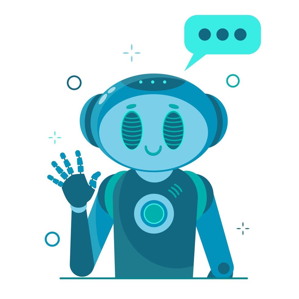 Smiling chat bot character robot helping solve a problems. Pro Vector