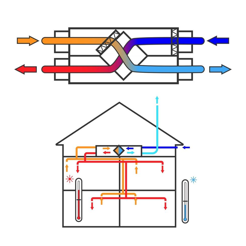 A simple diagram of a ventilation system recuperator. Scheme Pro Vector