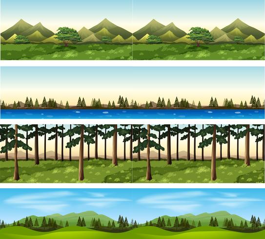 Different background scenes of mountains and trees Free Vector