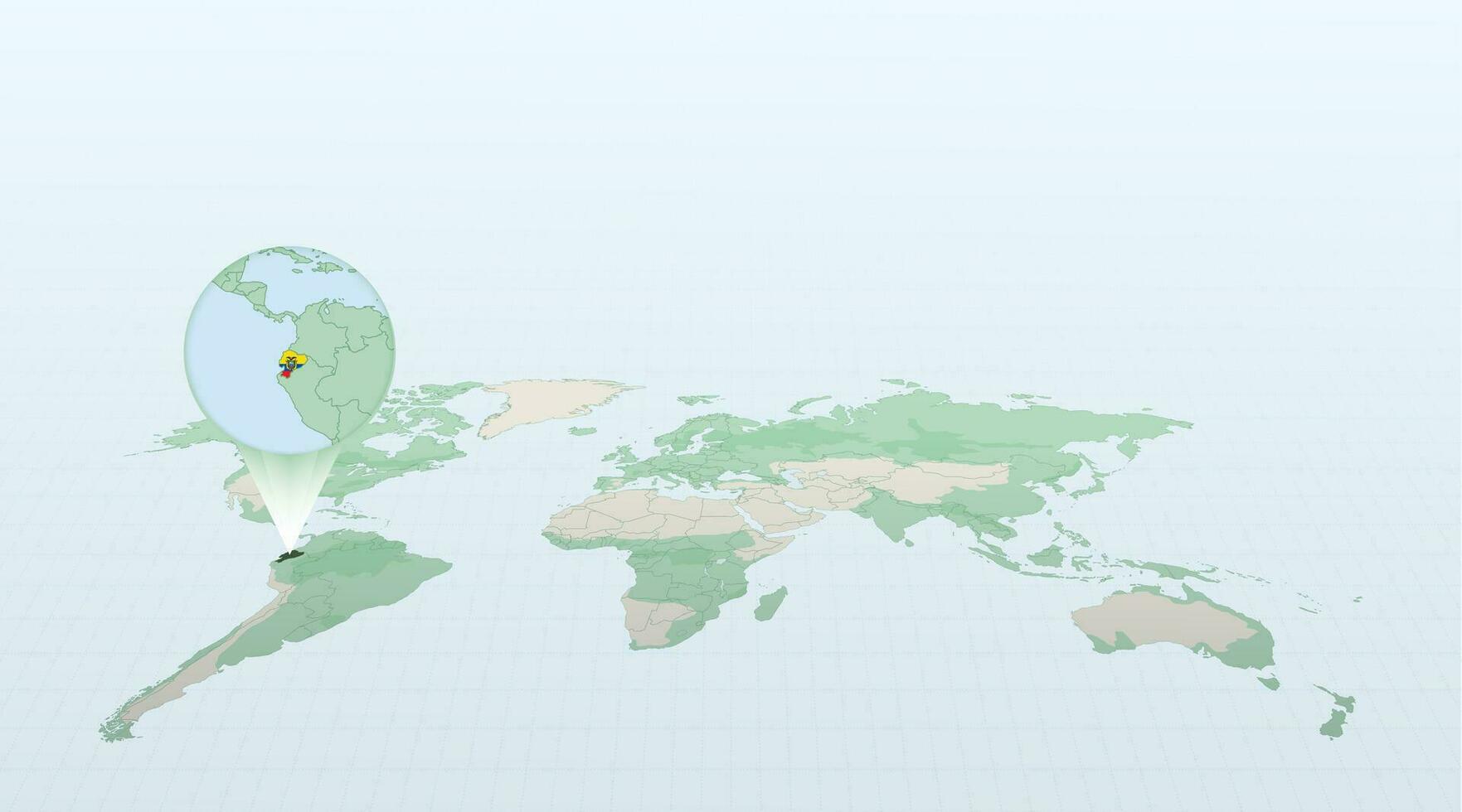 World map in perspective showing the location of the country Ecuador with detailed map with flag of Ecuador. Pro Vector