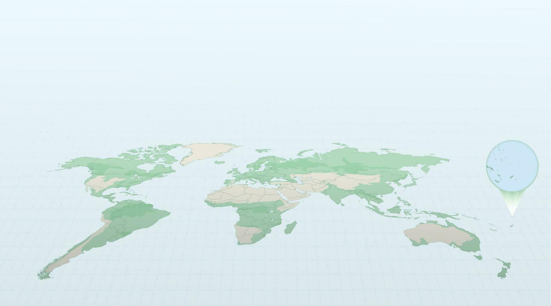 World map in perspective showing the location of the country Tuvalu with detailed map with flag of Tuvalu. Pro Vector