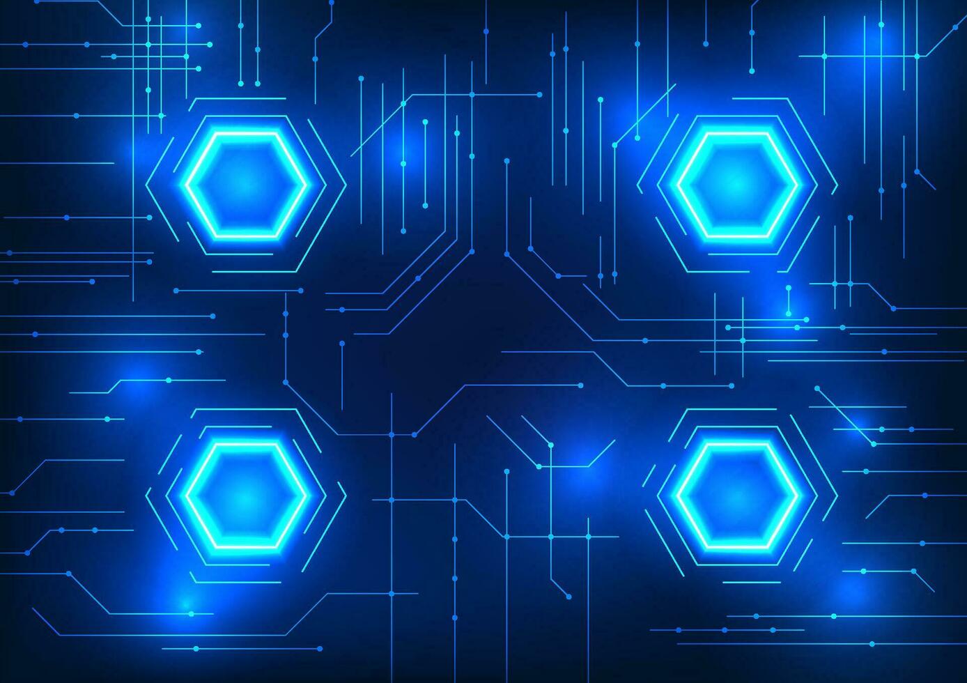 Abstract technology background Hexagonal shape combined with technological circuit lines. Emphasis on making the images modern and outstanding, suitable for work related to technology, posters Pro Vector