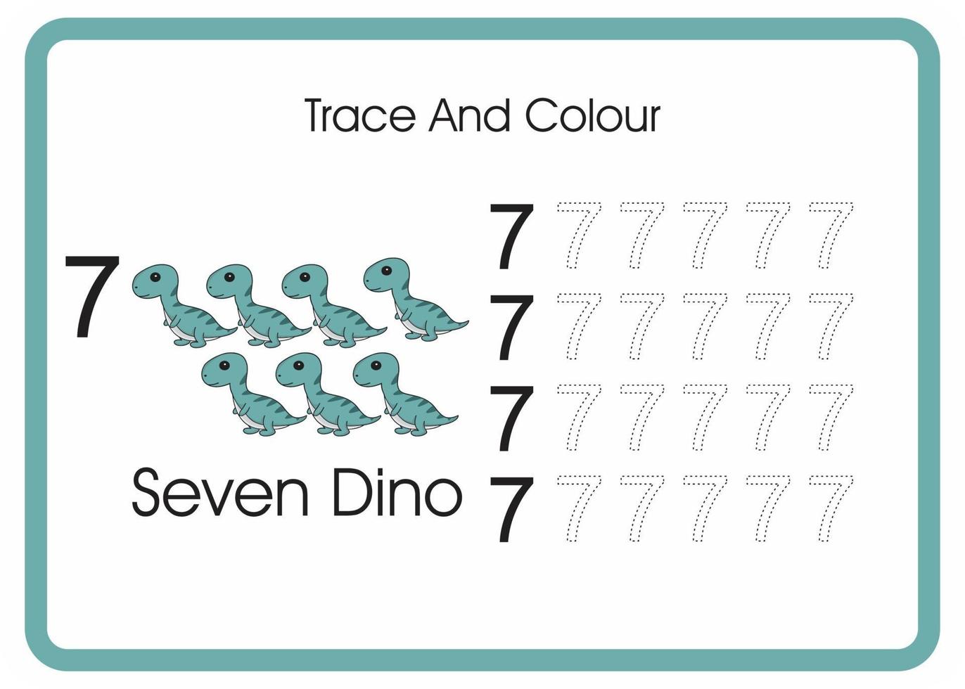 count trace and colour dino number 7 Free Vector