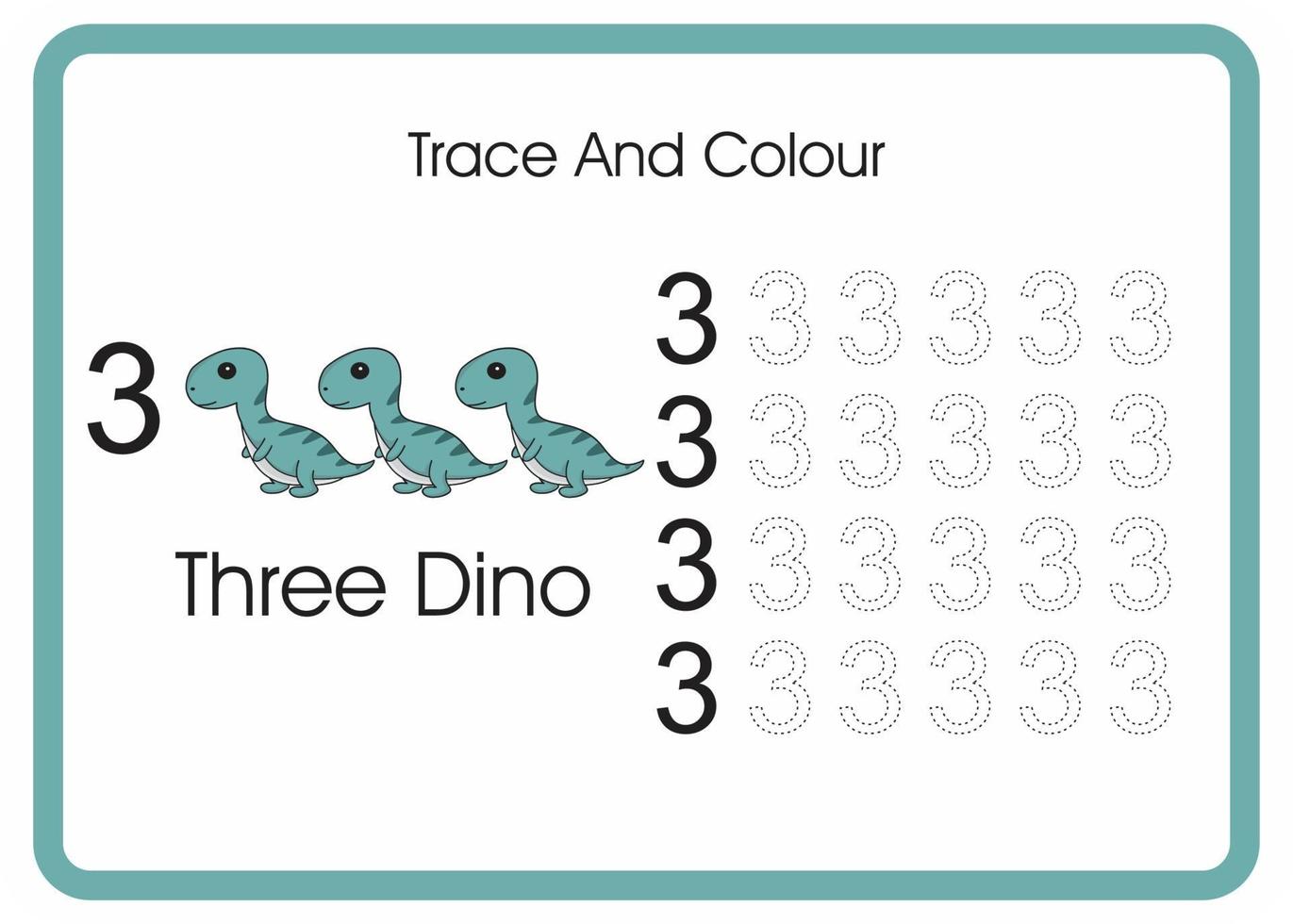 count trace and colour dino number 3 Free Vector