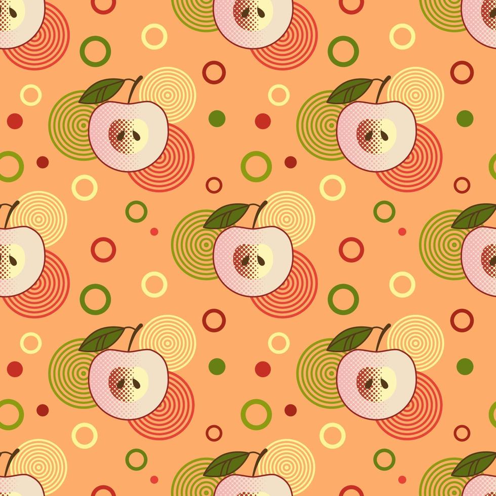 Seamless pattern with sprinkled apples and simple geometric shapes Pro Vector