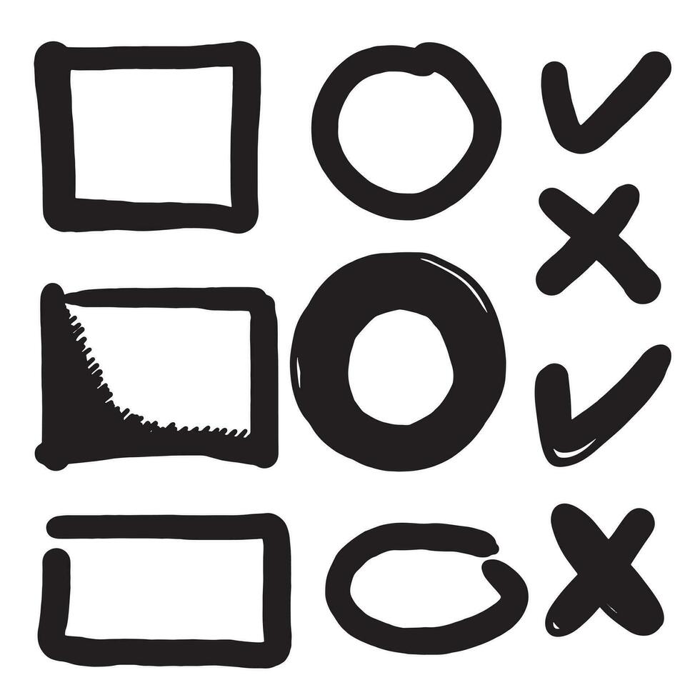 Doodle sketch style of Hand drawn lines, check mark, circles and curves vector illustration for concept design. Pro Vector