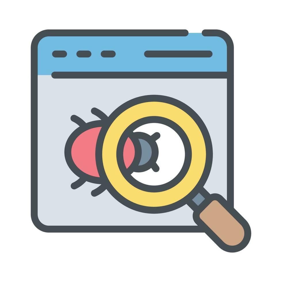 Website programming, bug finding. Developer with magnifier. Security concept Pro Vector