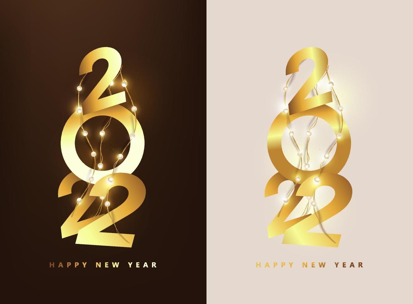 Happy New Year 2022 Number golden Text and led string lights Pro Vector