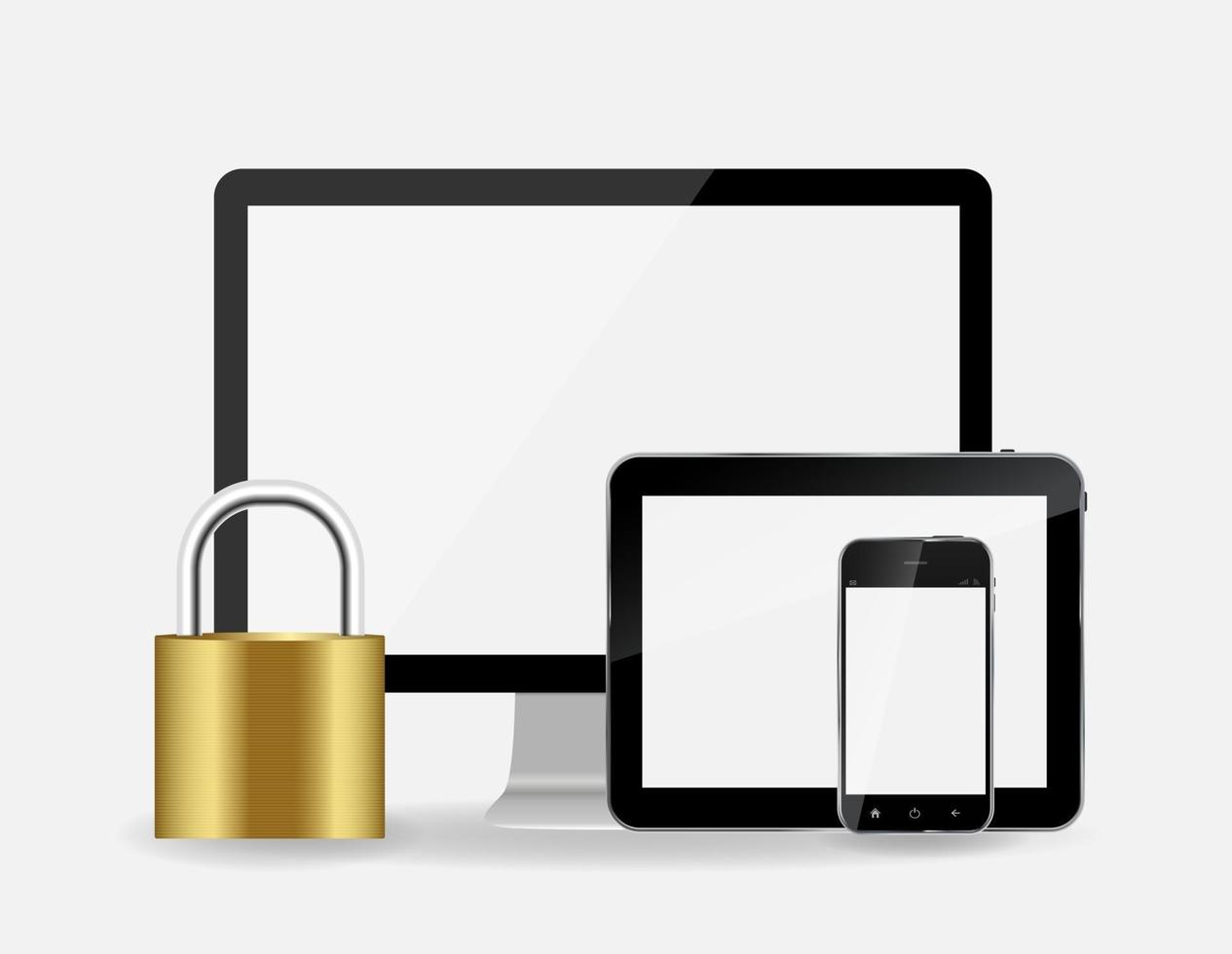 Internet Security Padlock with Mobile Phone, Tablet and Monitor vector