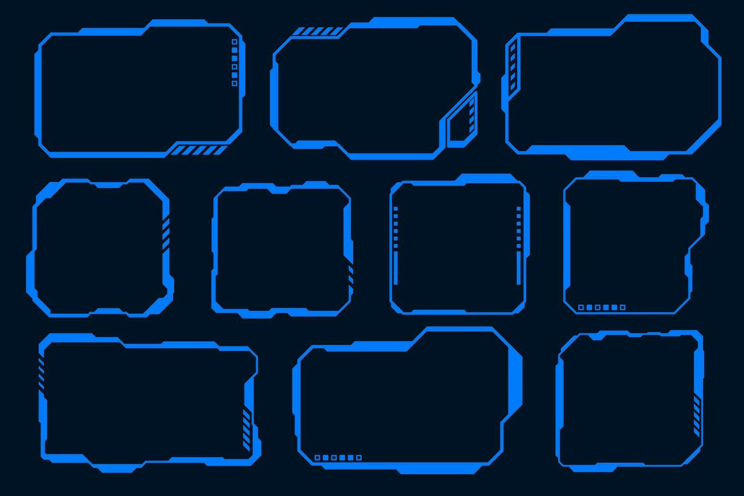 Vector set futuristic frame technology cyberpunk design element. Technology Hi-tech element. Pro Vector