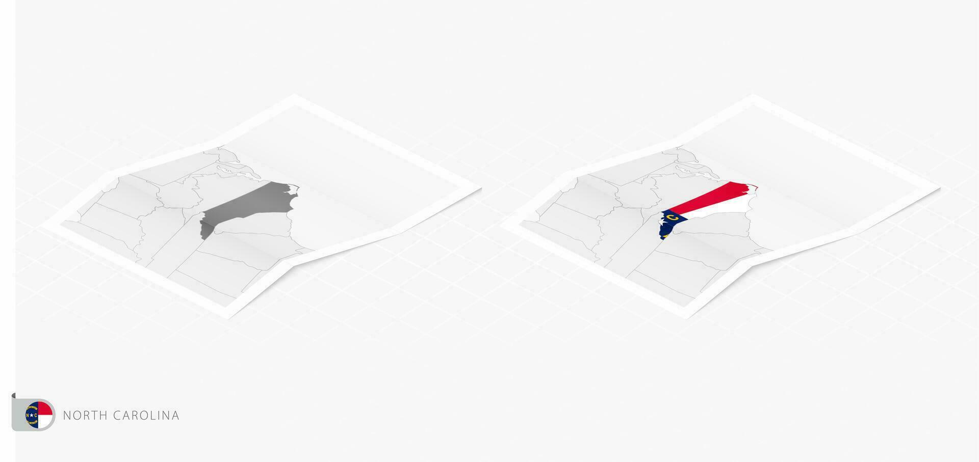 Set of two realistic map of North Carolina with shadow. The flag and map of North Carolina in isometric style. Pro Vector