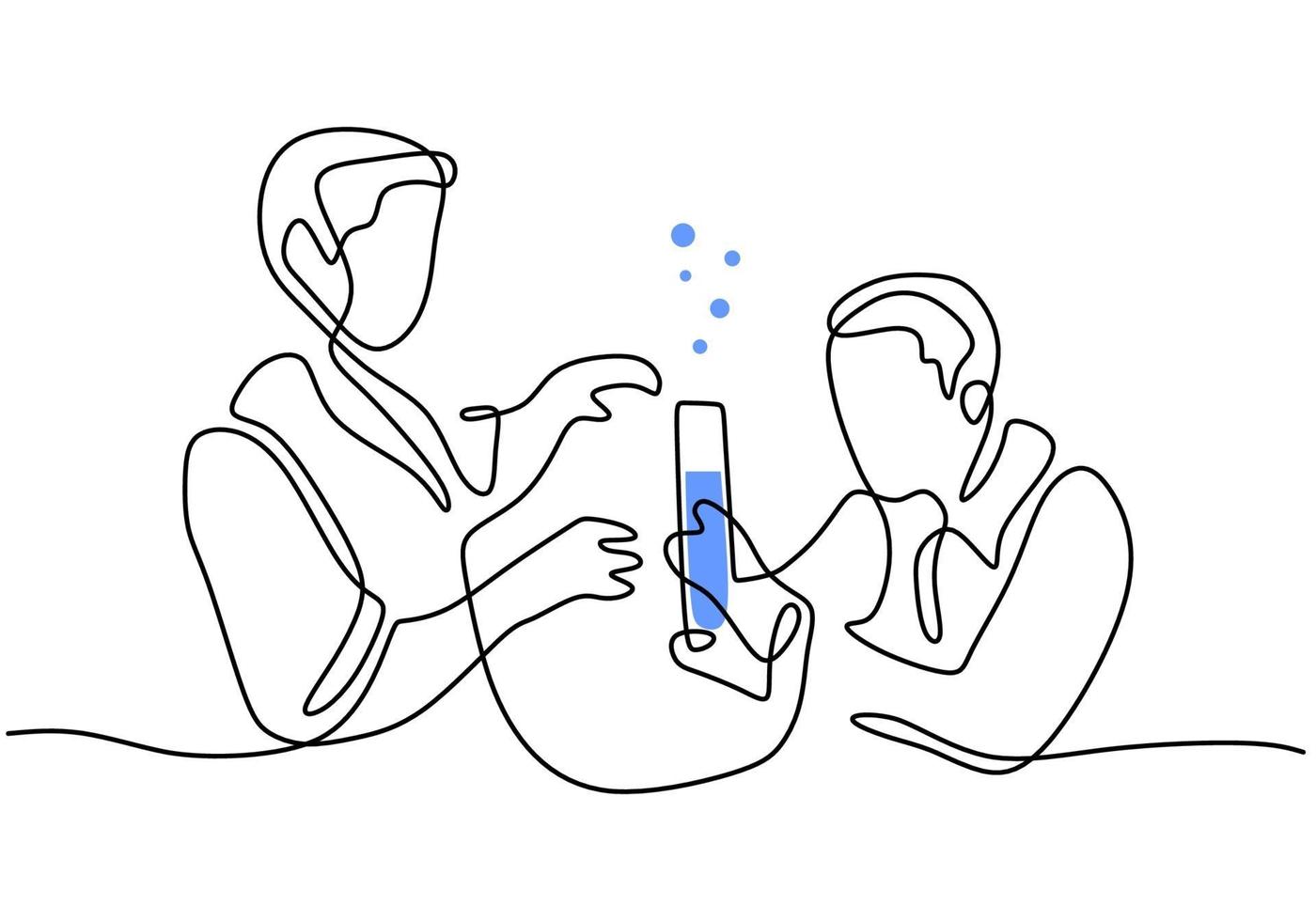 Continuous line drawing of scientist do experiment in laboratory Pro Vector