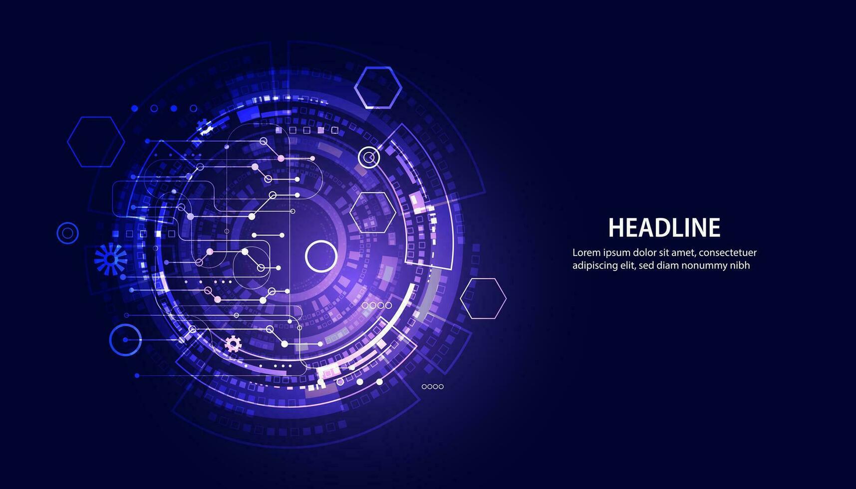 Abstract Circle Digital Circuit Concept Light Circle Network Connection purple Digital Background Futuristic Modern. Pro Vector