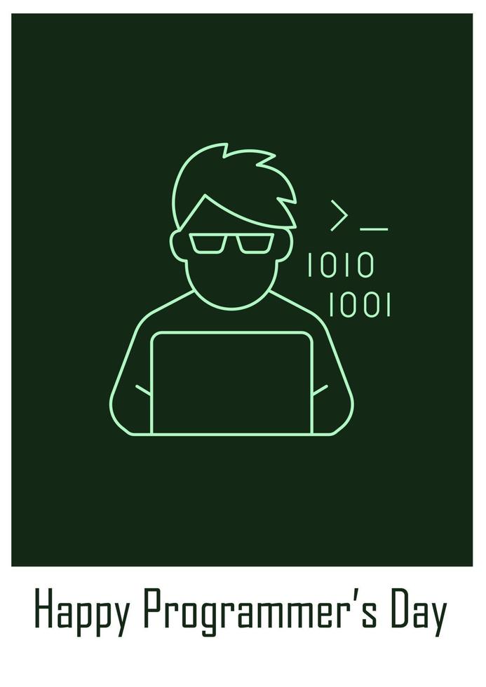 Becoming program developer postcard with linear glyph icon Pro Vector