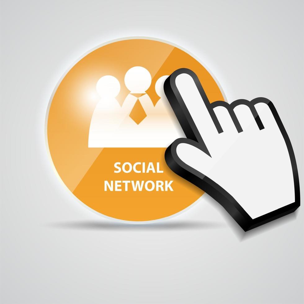 Shine glossy computer icon social network with mouse hand cursor Free Vector