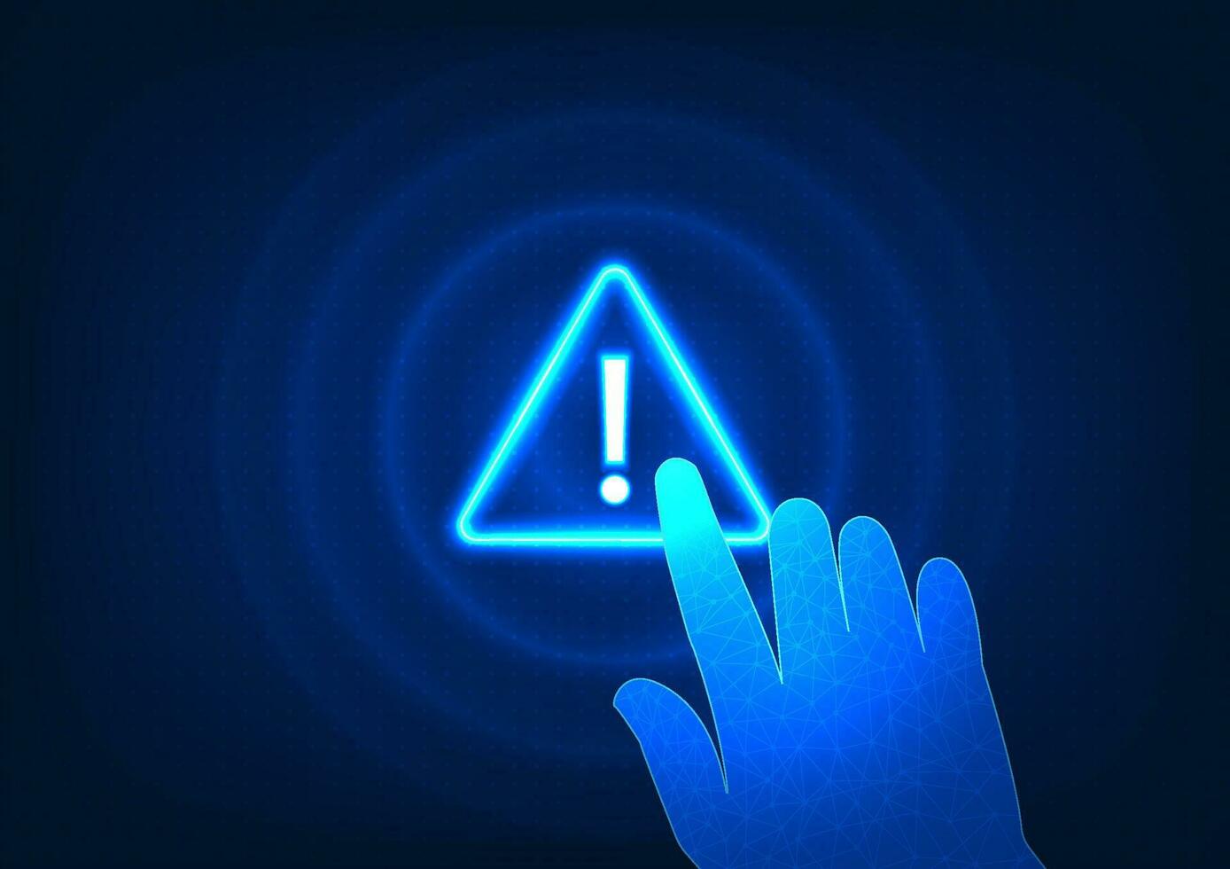 Notification technology The hand pressing the alert symbol indicates a system notification of a technological data processing error. Pro Vector