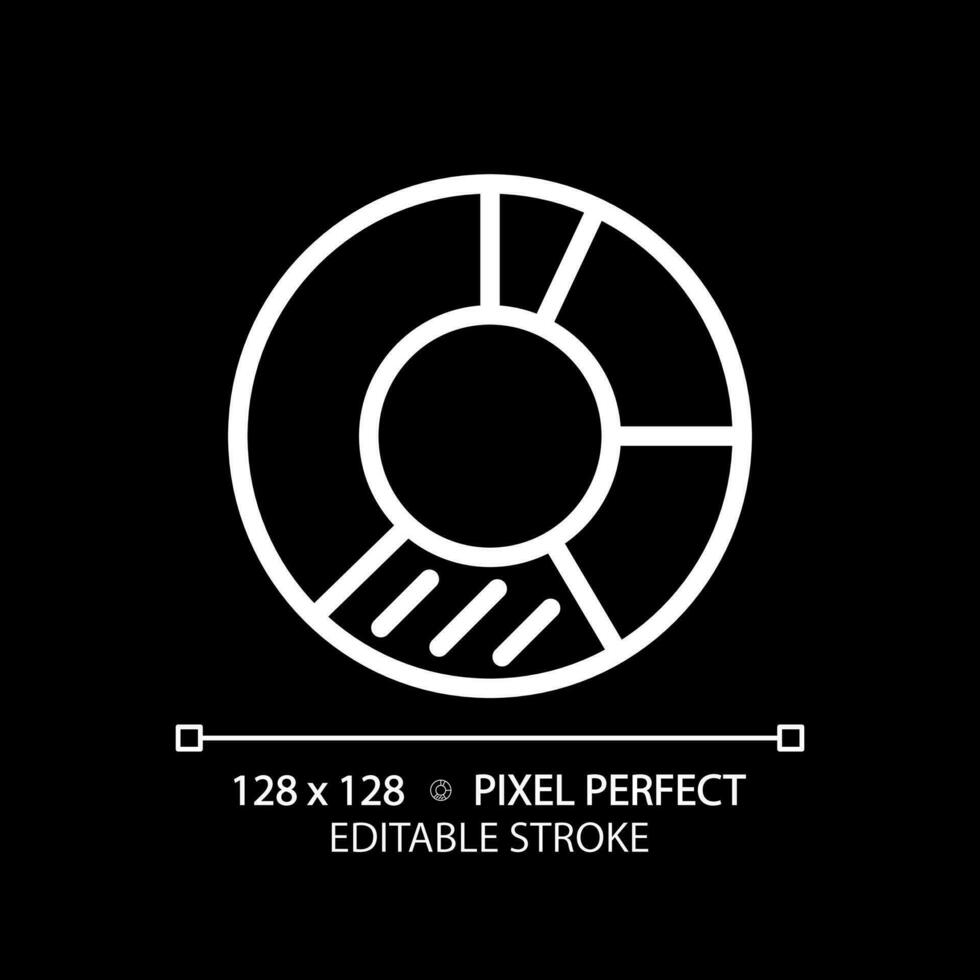 Donut chart white linear icon for dark theme. Competitor analysis. Customer segmentation. Presentation graphic. Thin line illustration. Isolated symbol for night mode. Editable stroke Pro Vector