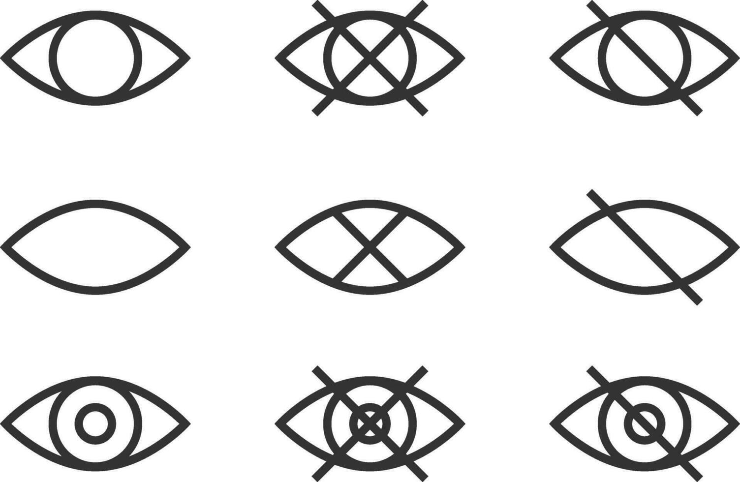 Set show password icon, eye symbol. Vector vision hide from watch icon. Secret view web design element. Pro Vector