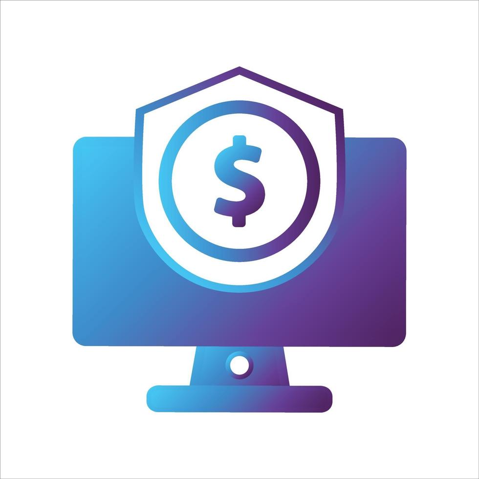 computer with security shield icon. safe computing icon vector