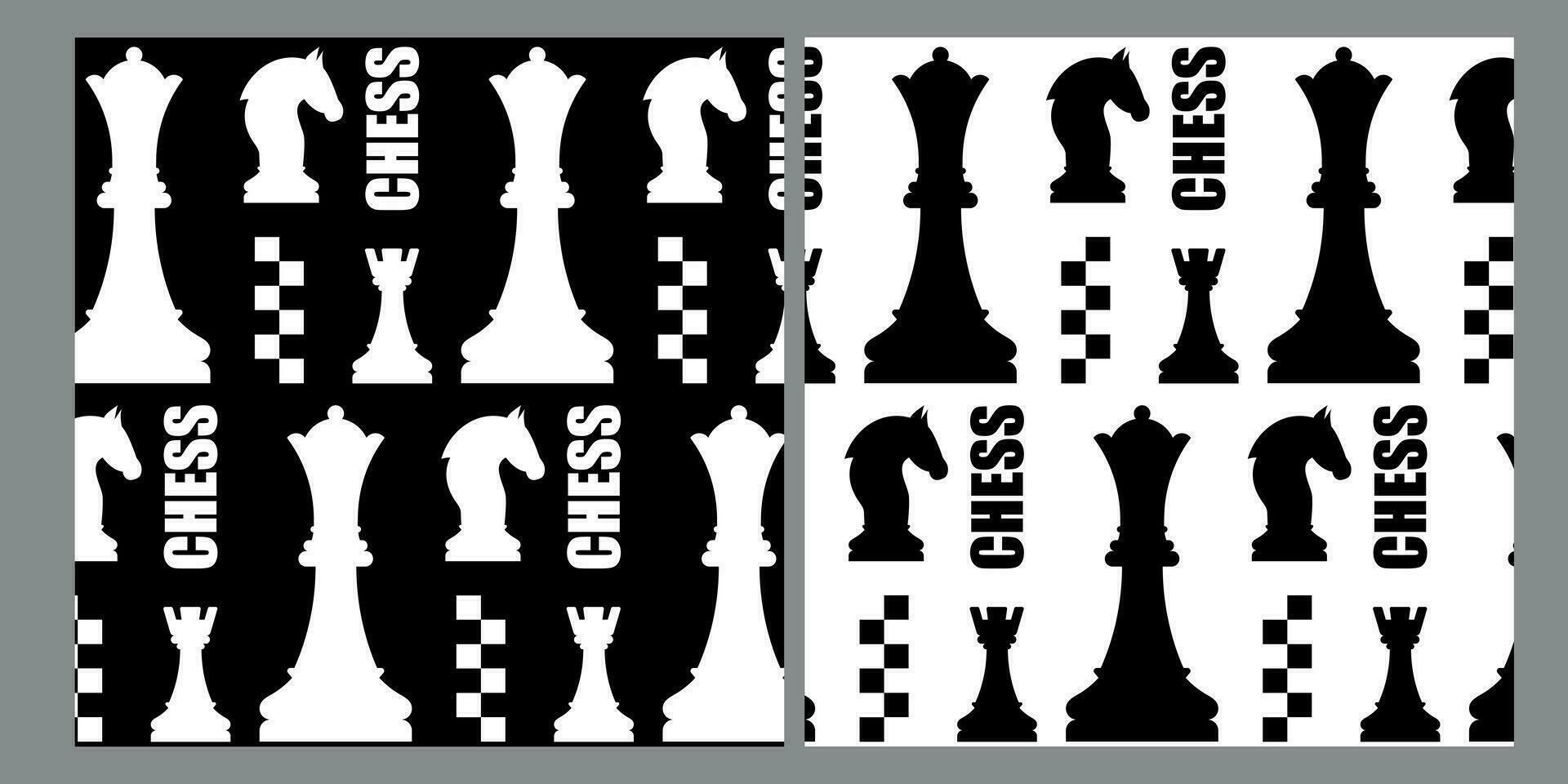 Seamless vector pattern with black chess on a white background and white chess on a black background. Pro Vector
