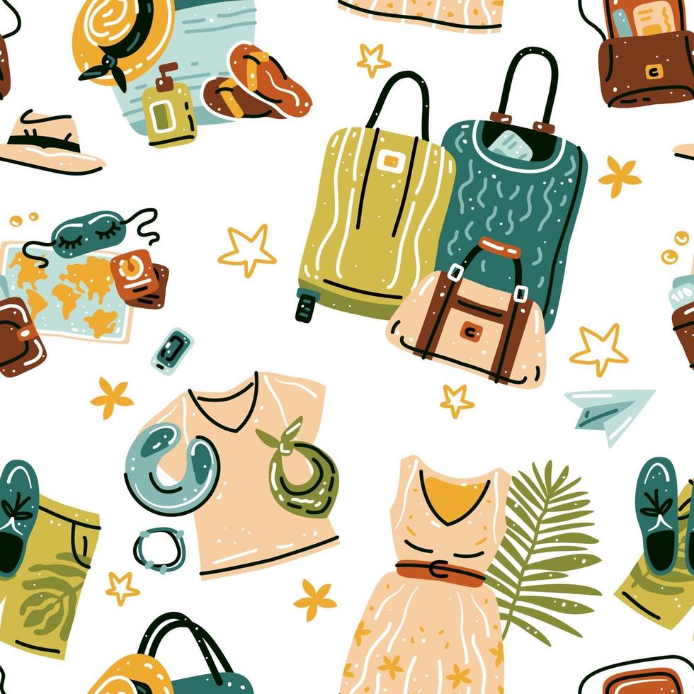 Seamless pattern with travel stuff objects. Vector Pro Vector