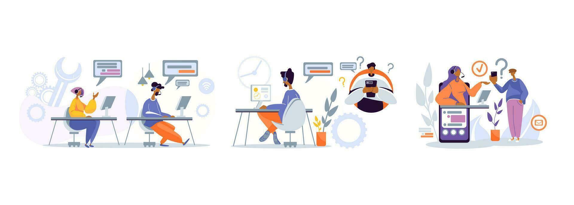 Support workers on their workplaces help clients solve problems online Pro Vector