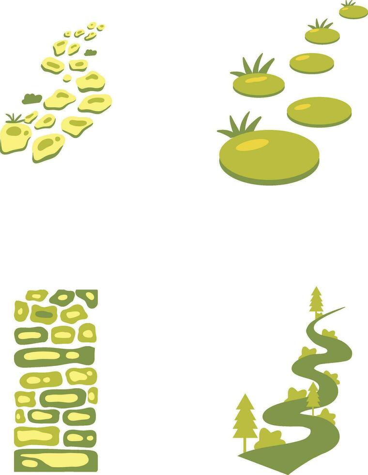 Nature Path Way With Simple Design. Vector Illustration Set. Pro Vector