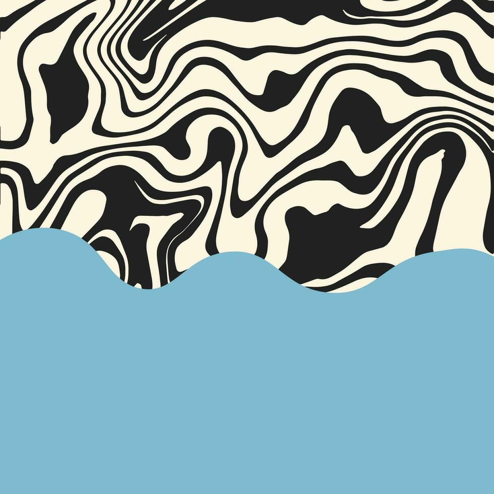Abstract banner template with zebra pattern and light blue copy space. Trendy groovy square cover for social media post. Retro hippie 70s style. Liquid marble texture vector