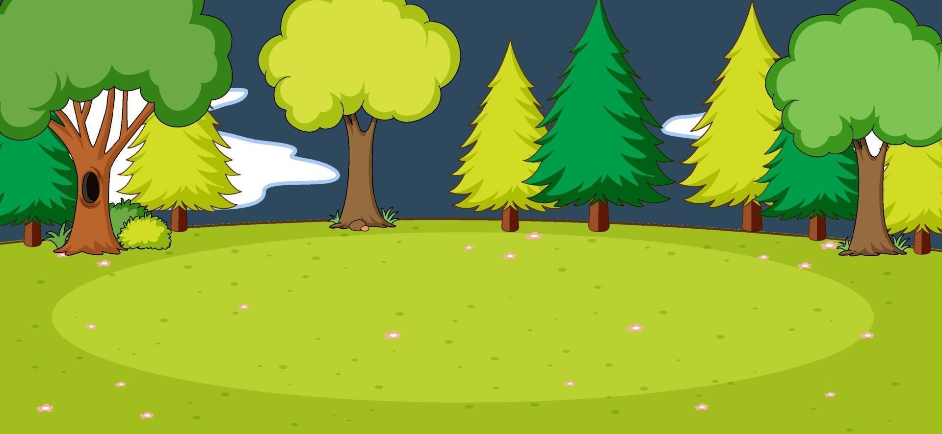 Empty park scene with many trees at night in simple style Free Vector