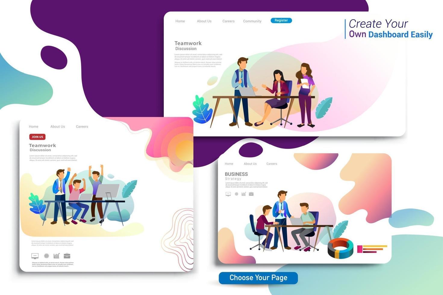 Set of landing page design templates, business strategy and analytics Pro Vector