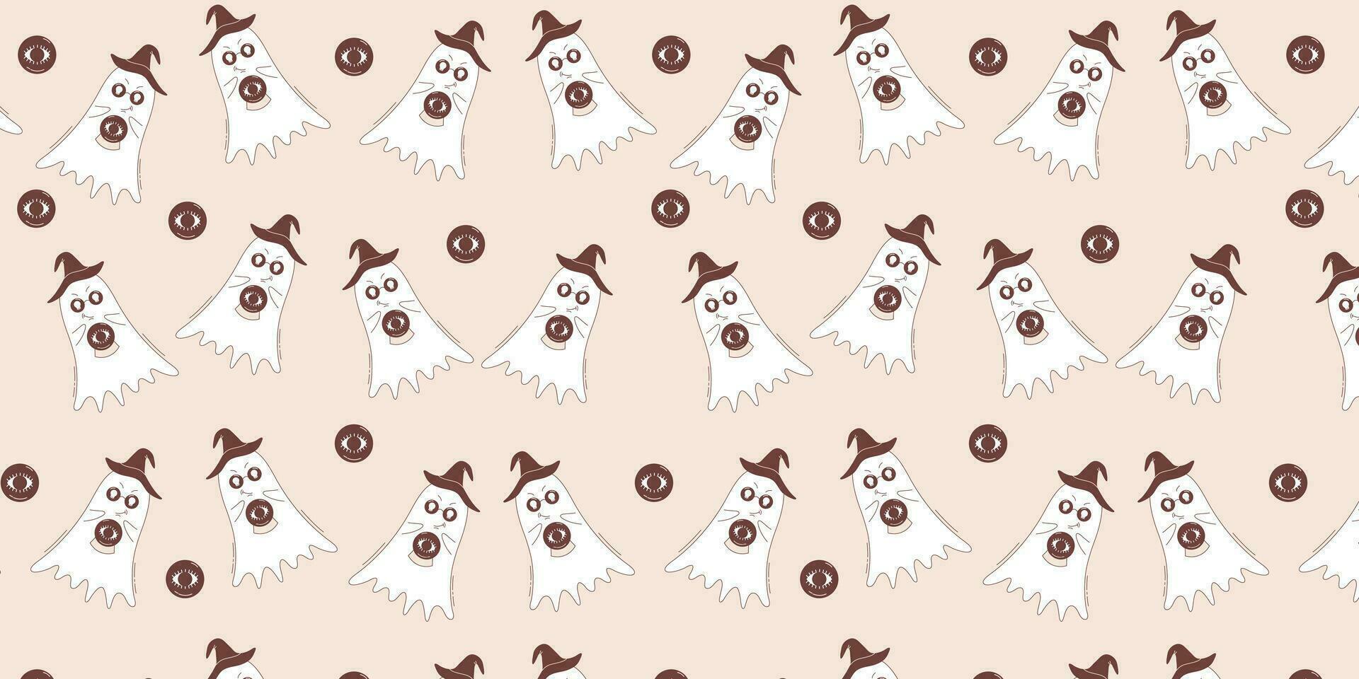 Halloween vector pattern. Ghost with crystal ball in groovy retro style. Pro Vector
