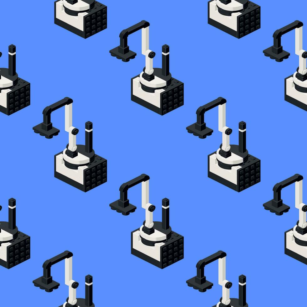 Pattern of a robot in isometry on a blue background. Vector Pro Vector