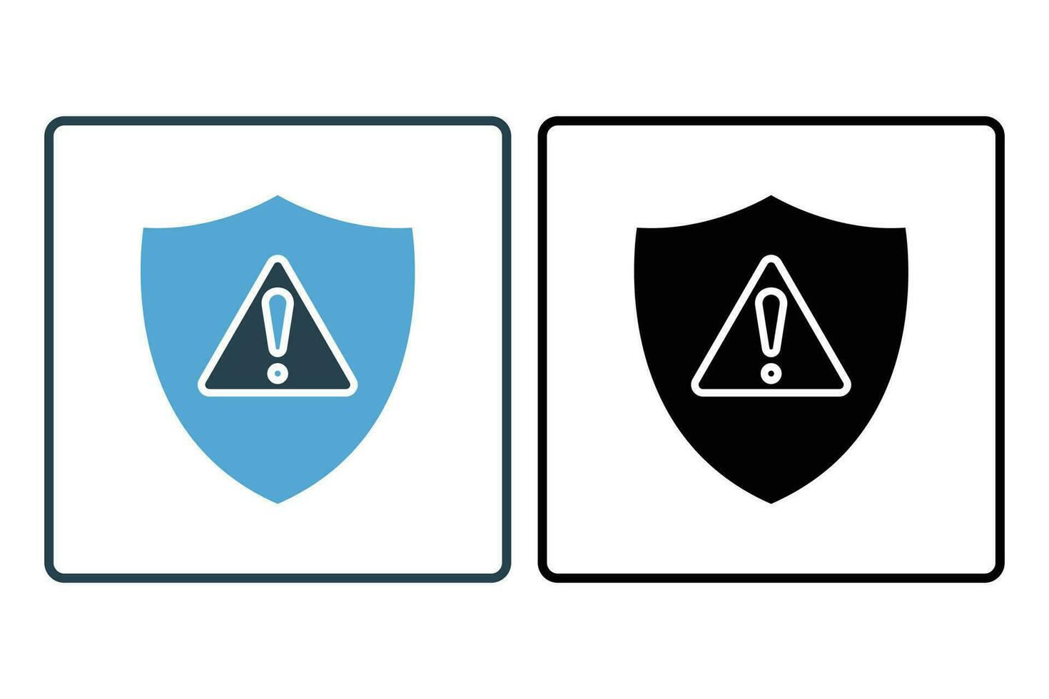 Security alert icon. Shield with exclamation mark. icon related to Warning, notification. suitable for web site, app, user interfaces, printable etc. Solid icon style. Simple vector design editable Pro Vector