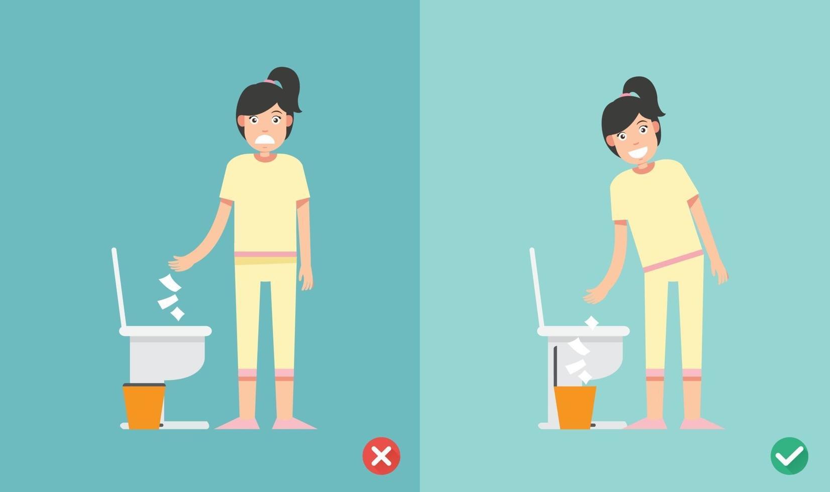 wrong and right way do not put tissue paper sheet into the toilet bowl Pro Vector