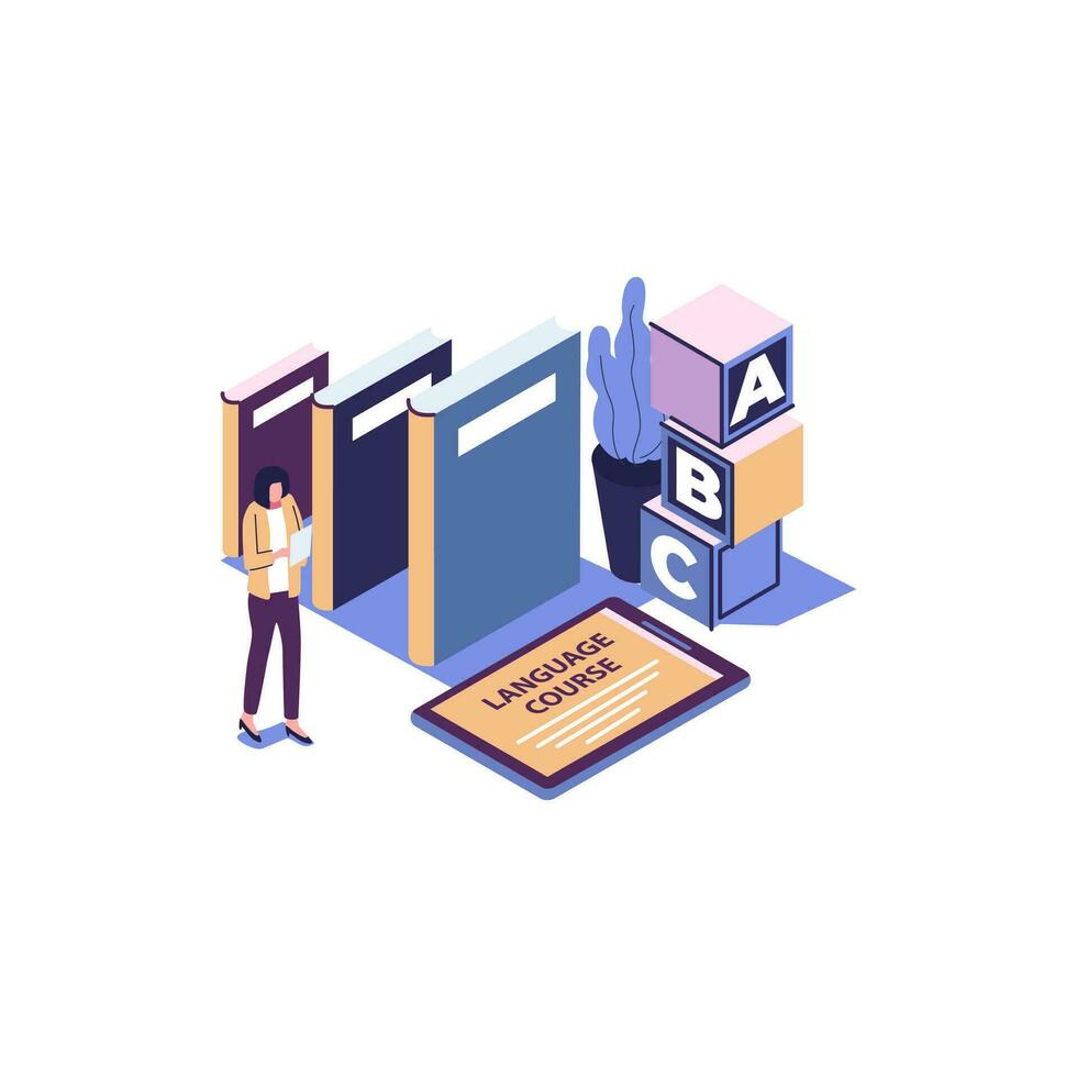 online learning foreign languages, girl and boy for gadgets learn languages, online study through the website, communication with foreigners via the Internet Pro Vector