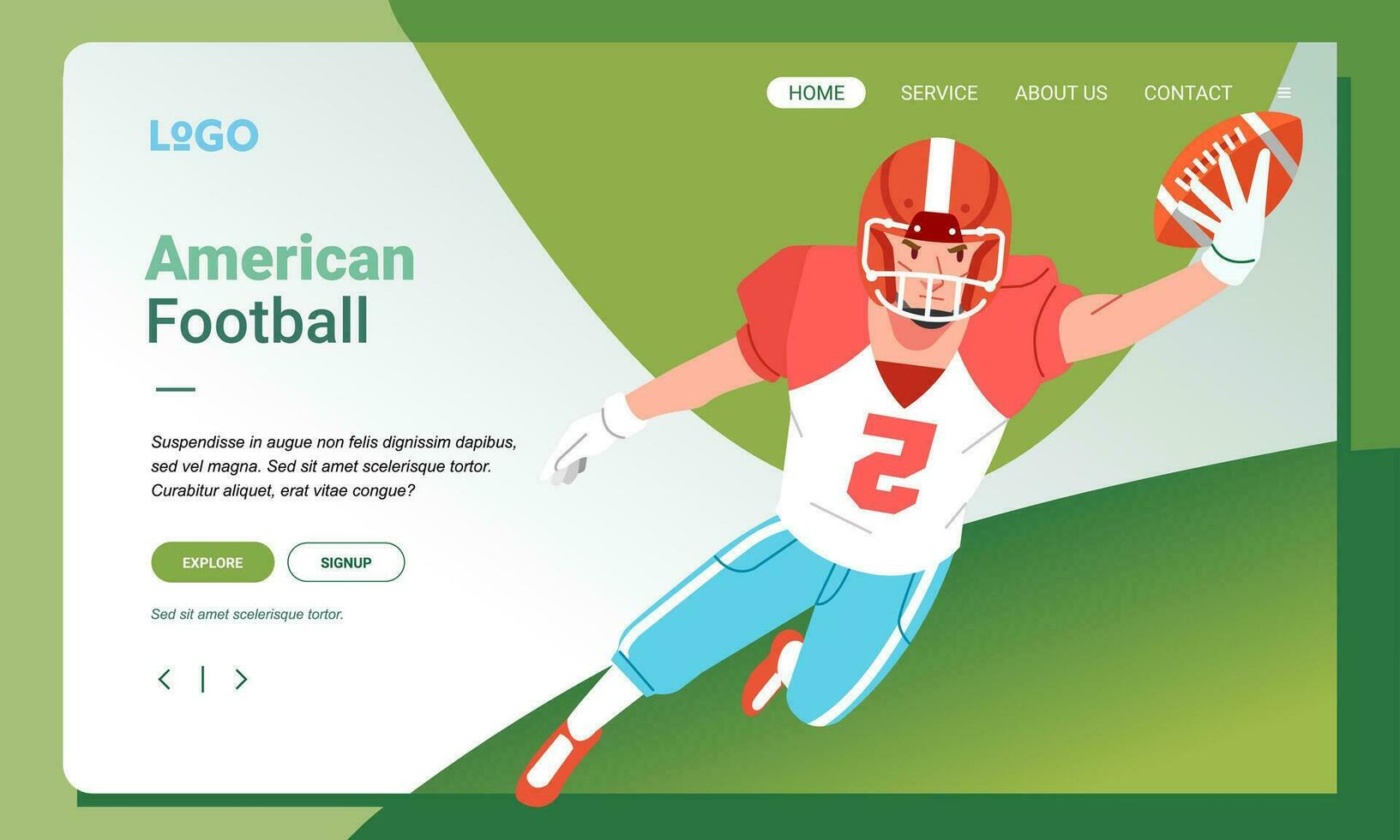 American football minimalist banner web illustration mobile landing page GUI UI player catch up ball Pro Vector