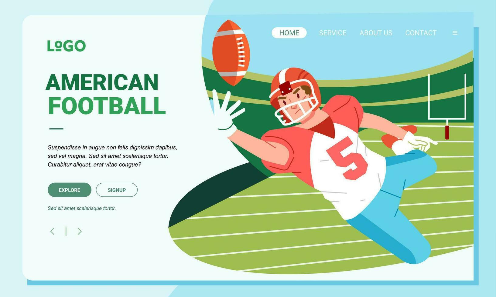 American football minimalist banner web illustration mobile landing page GUI UI player jump catch up ball Pro Vector