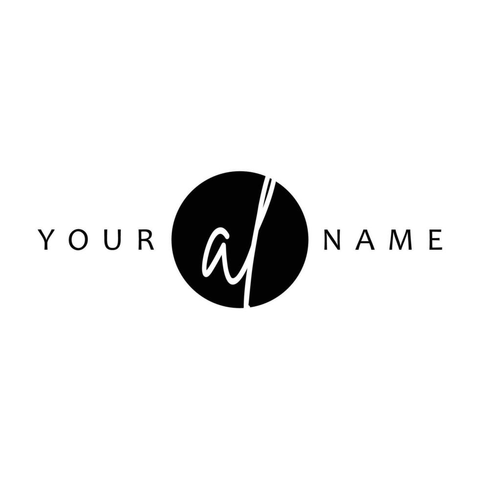 AL Initial Handwriting In Circle Frame Template Design Pro Vector