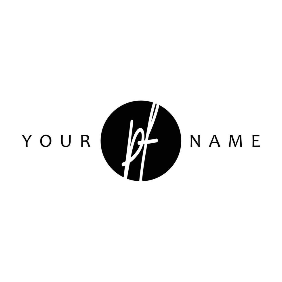 PF Initial Handwriting In Circle Frame Template Design Pro Vector