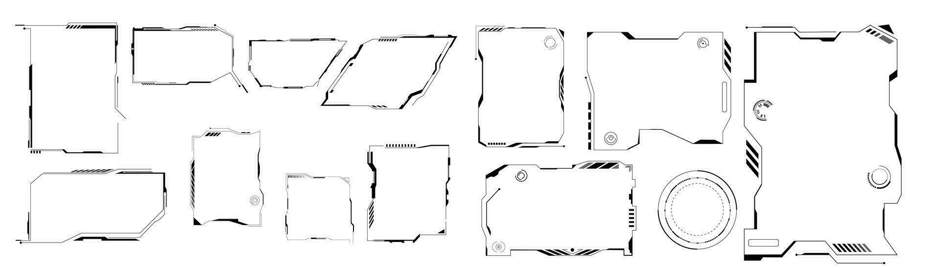 Hud tech title frame, interface. Virtual futuristic callouts grid display blue ui hologram user interface modern vector dashboard future graphic cyberspace electronic menu. Pro Vector