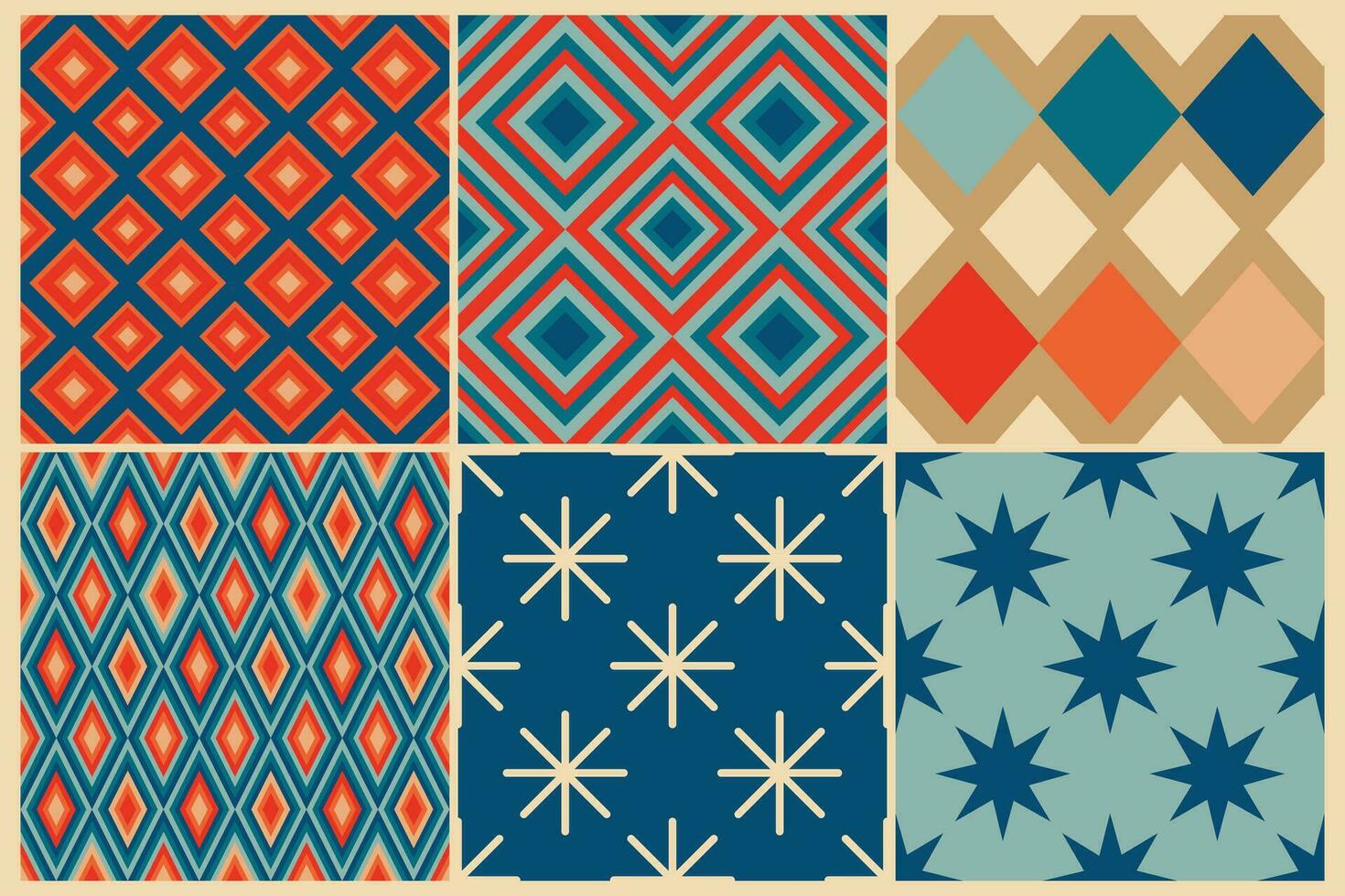Geometry retro seamless patterns in the style of the 50s and 60s Pro Vector