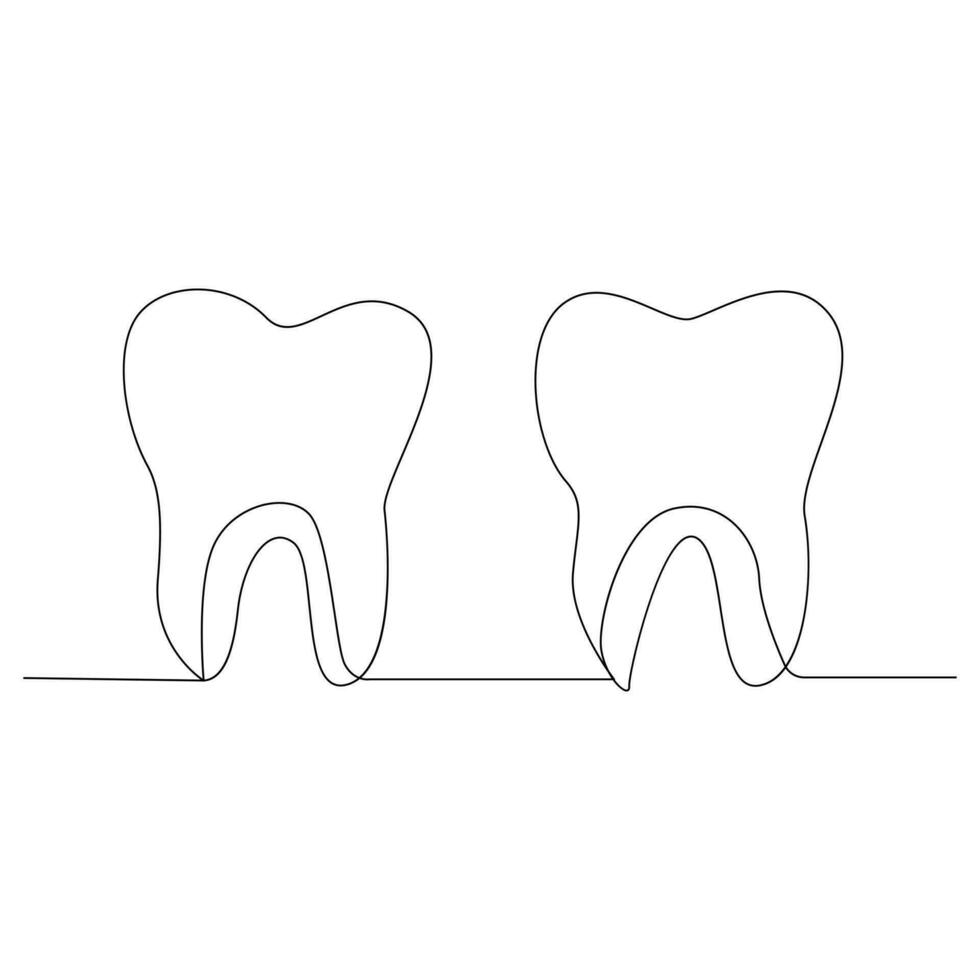 Continuous one line drawing of tooth outline vector drawing and tooth line icon design Pro Vector
