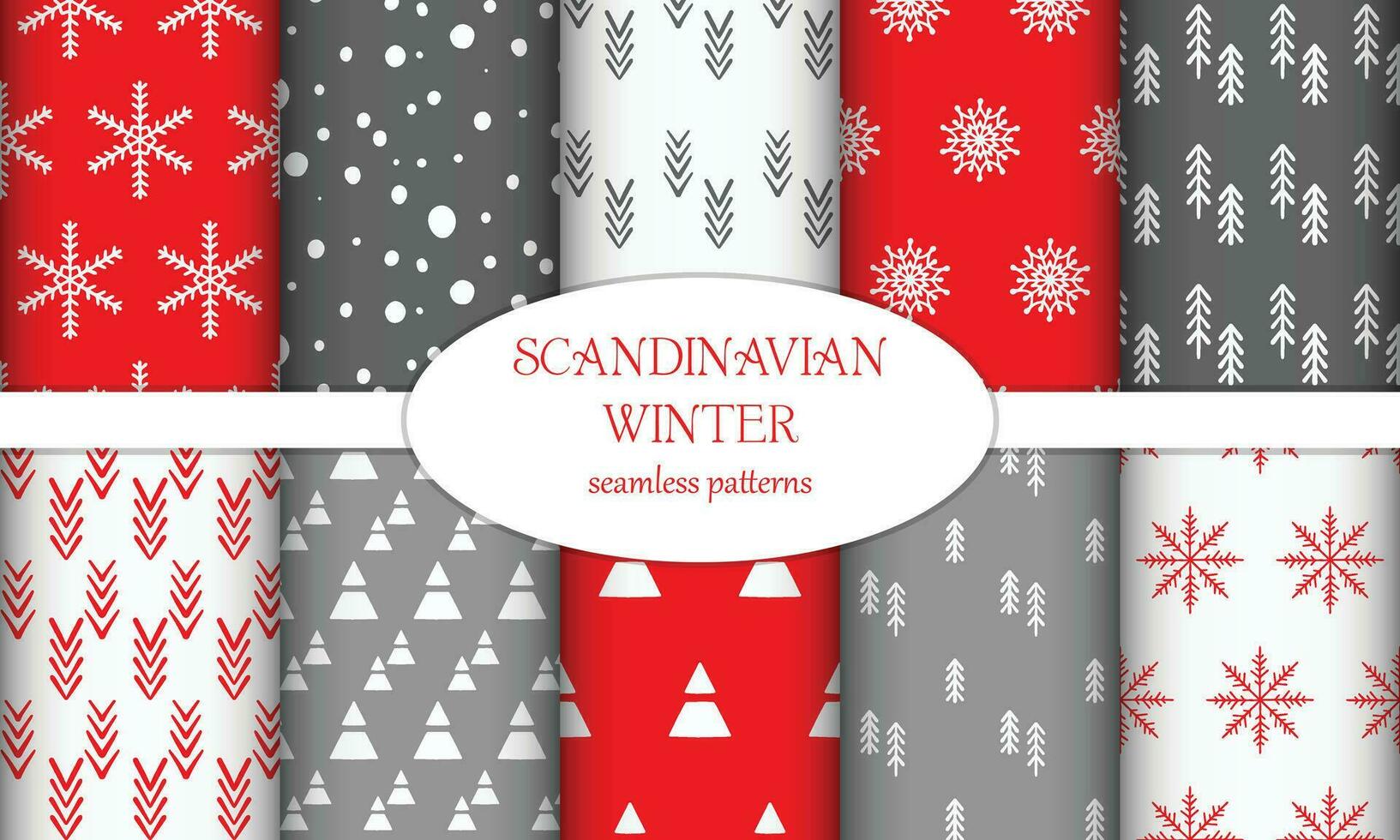Set of winter hand drawn patterns in Scandinavian style. Festive patterns for wrapping paper, fabric, cards. Vector illustration Pro Vector and Pro SVG