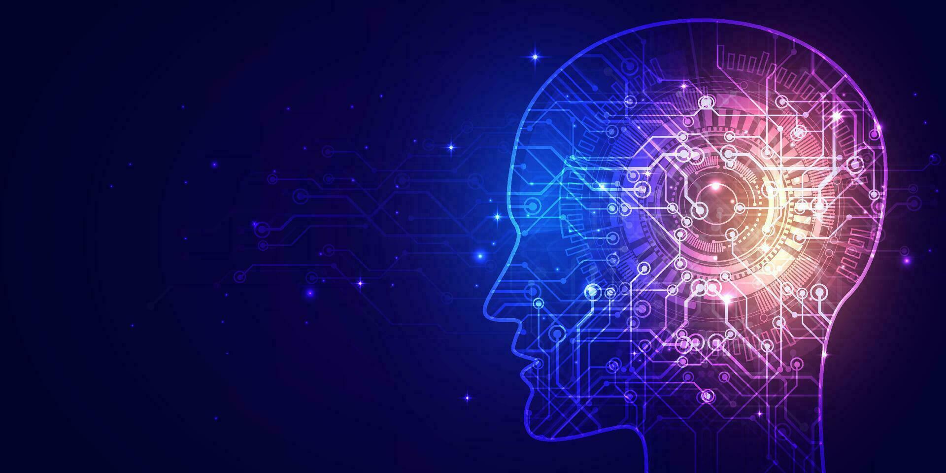 Abstract digital technology brain futuristic, AI Artificial intelligence blue background, Cyber science health tech, Innovation chat future big data, internet network connection, Cloud hi-tech vector Pro Vector