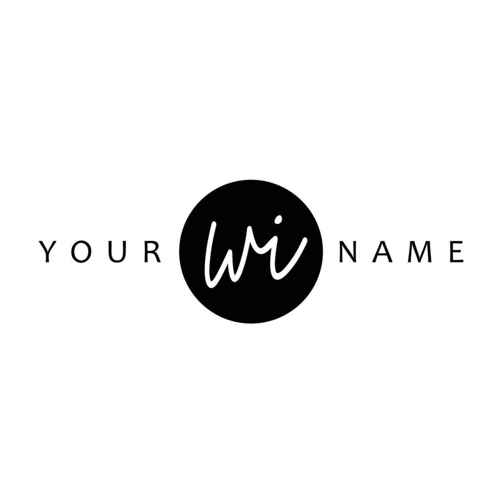 WI Initial Handwriting In Circle Frame Template Design Pro Vector